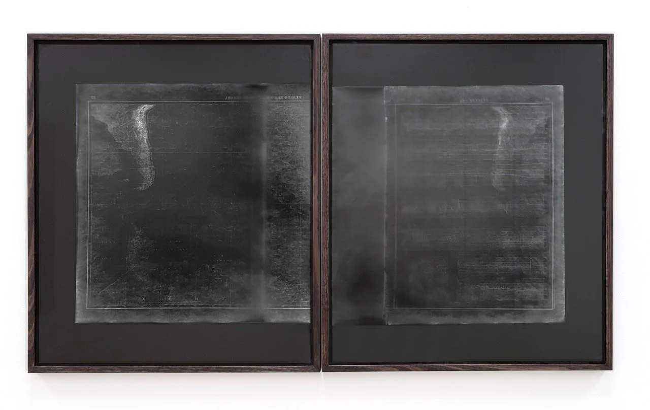 Izabela Pluta, Counterspace (The Pacific: visualisation of bottom of the pacific /relief of bottom south parts), 2021, Silver gelatin photographs (contact negatives), Unique State, 52 x 73cm (set of 2)