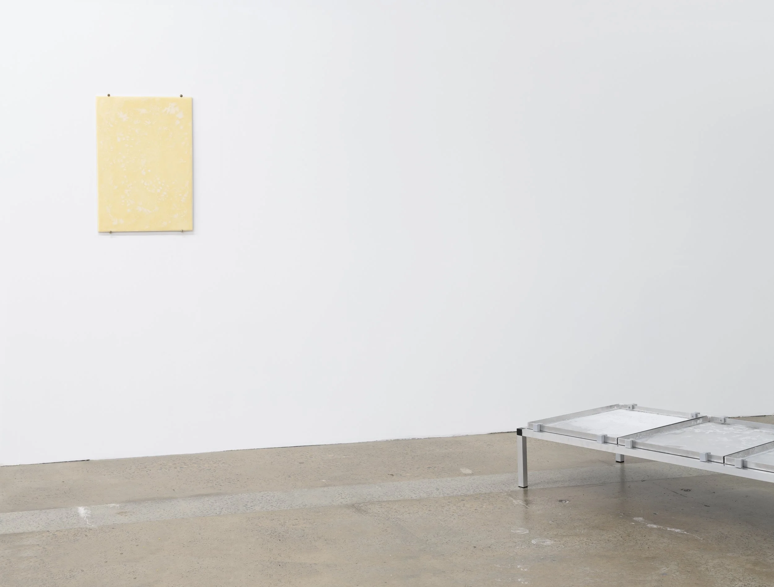 2024, aluminium, glass, 250g sea salt, polylactic acid, sterling sliver, Five plates each 60 x 40 x 2.5cm. signed verso.