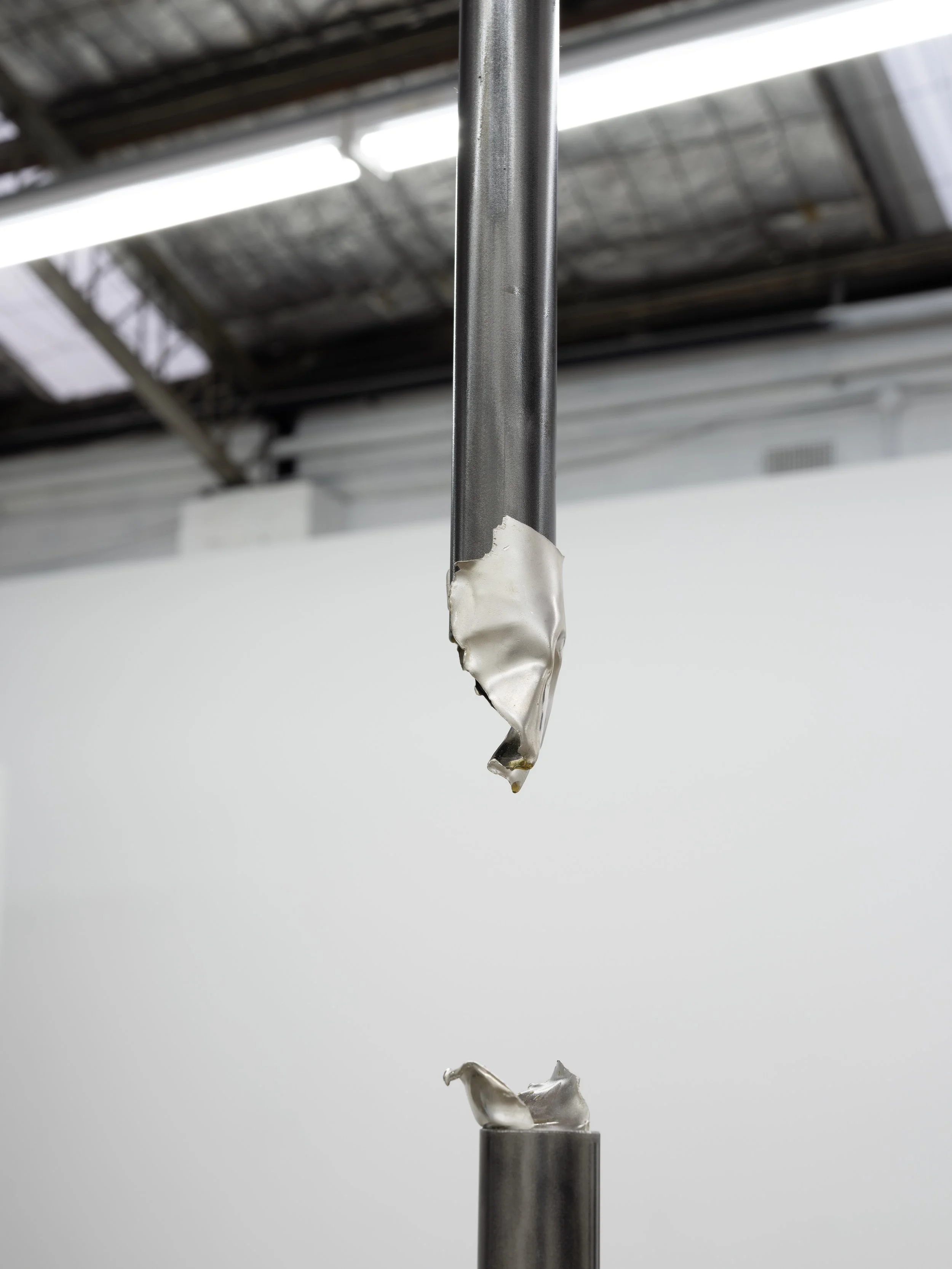 Yvette James, As we pull the earth towards ourselves, 2024 motor oil, steel, silver. 420 x 90 cm x 90cm