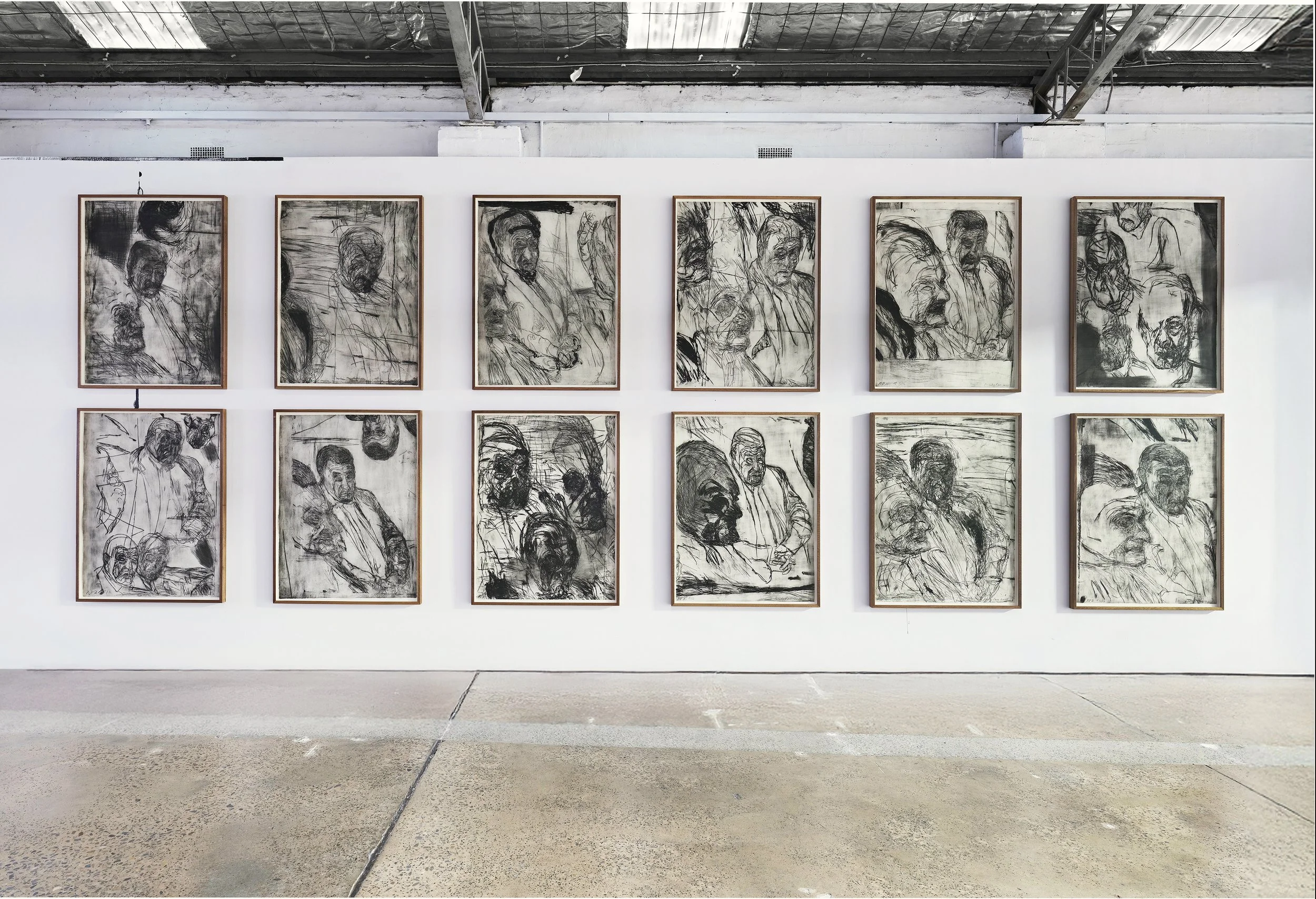 Mike Parr, Repetition Renders Structure of Myth Apparent #1 - 12, Drypoint Etching from Copper in black on 300gsm Hahnemuhle, 106 x 78 cm,